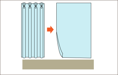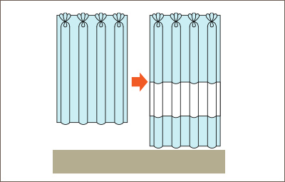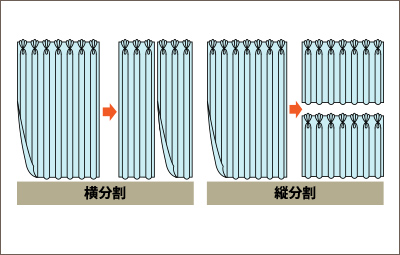 1枚のカーテンを分割(部分取り)することで、2枚以上のカーテンを作ります。