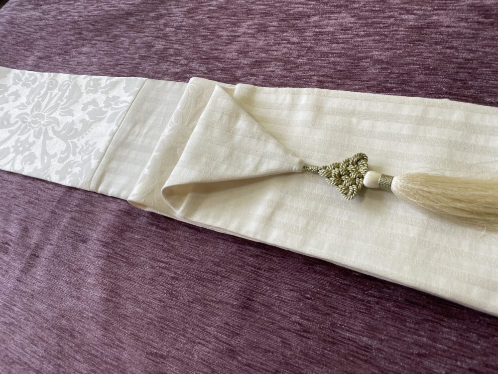 生地は2種類ありオフホワイトのストライプとダマスク柄。